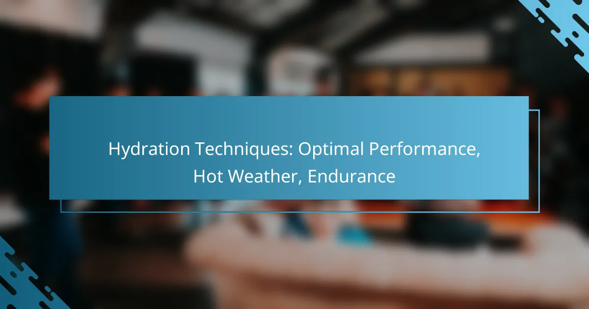 The best hydration techniques for optimal performance involve a combination of electrolyte-rich beverages, effective water intake strategies, and proper timing of hydration. These methods help maintain fluid balance, enhance endurance, and support overall athletic performance, especially in hot weather conditions.
